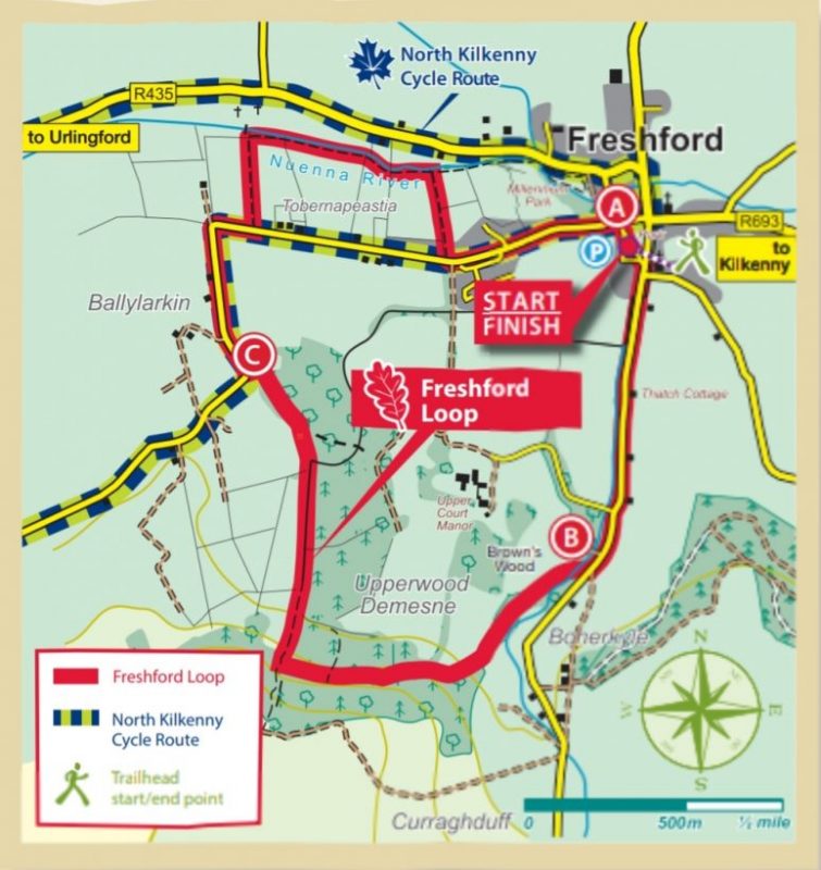Gathabawn Village is located on the L1804 between Freshford and Johnstown, Co. Kilkenny. Watch out for turn on the R693, 0.5 miles on Johnstown side of Freshford. Gathabawn can alsobe accessed from the R639 (old N8) at crossroads half way between Cullahill and Johnstown (see sign for Gathabawn). Note: Follow ‘Gathabawn Loop’ signs only.